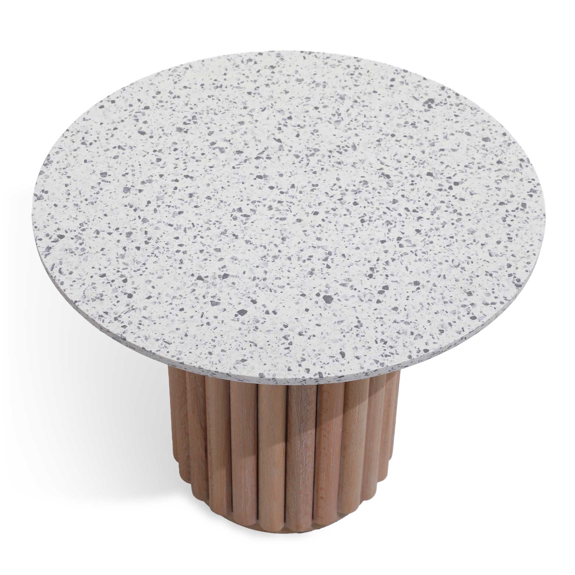 The Manor coffee table adds a refined touch of elegance to your living room. Featuring a column-inspired base with beech wood paneling, it offers a choice of a round or square top. The tabletop is available in elegant Rialto white or Venice graphite terrazzo, or a sleek painted RAL finish, blending timeless style with modern flair.